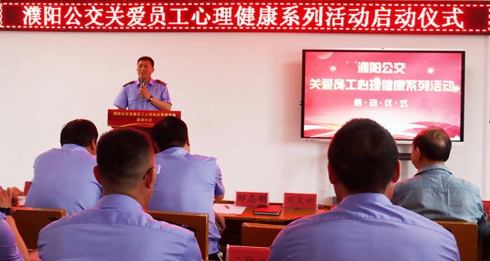 5月20日,在一年一度的“公交駕駛員關(guān)愛日”到來之際,濮陽公交關(guān)愛員工心理健康系列活動啟動儀式在公司會議室舉行。公司領(lǐng)導(dǎo)班子成員和130名員工參加啟動儀式,濮陽市心理咨詢師協(xié)會會長黃廣奇出席本次儀式,儀式由公司總經(jīng)理助理趙娜主持。