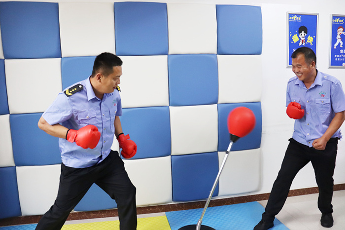 儀式最后,所有參會人員來到“員工心理服務(wù)中心”和“舒心驛站”進(jìn)行參觀體驗(yàn)。有的員工在心理服務(wù)中心的沙盤區(qū)域通過游戲的方式,自由的表達(dá)自我,實(shí)現(xiàn)情緒釋放與創(chuàng)傷愈合的效果。有的員工則來到舒心驛站,通過室內(nèi)配備的健身器械、拳擊沙袋及宣泄墻等運(yùn)動型宣泄器材有效釋放工作期間的負(fù)能量。
