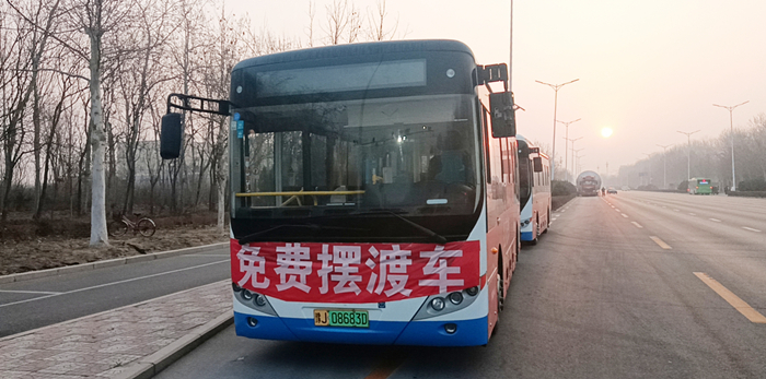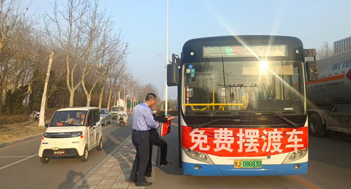 3月13日,市公交公司制定相應的擺渡車運營保障方案,并連夜制作了帶有“免費擺渡車”字樣的條幅。3月14日早晨,天剛拂曉,公司便組織工組人員將條幅貼心地掛在了擺渡車上,同時在站臺乘車處有工作人員現(xiàn)場維持秩序,為乘客提供咨詢、幫扶等服務,疏導乘客文明、有序乘車,為群眾的出行增添了一份溫暖與便利。